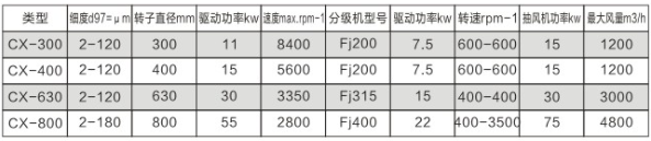 CX-1超細(xì)粉碎機(jī)廣泛的適應(yīng)性不僅是由于具備機(jī)械式柔和破碎以及大量空氣流動(dòng)形成的冷磨效果,同時(shí)也歸功于氣流分級(jí)機(jī)具有優(yōu)越的分級(jí)性能,分級(jí)性能如下: