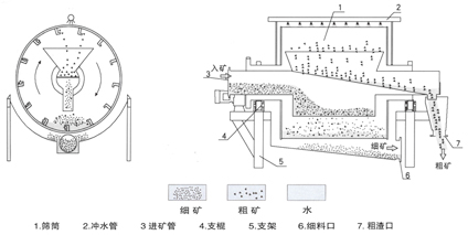 該機內(nèi)通過滾筒勻速旋轉(zhuǎn),使物料和篩網(wǎng)全面接觸大大提高物料的分級效率,并且可以根據(jù)物料及其不同特性,更換篩網(wǎng)目數(shù),適宜不同物料的分級作業(yè),便于維修,操作方便。粗料口螺旋設計,避免了物料顆粒大,或物料粘度高,而難以自行排渣的弊端,減少了沖洗液的使用,降低了生產(chǎn)成本,該機因齒輪直接以滾筒聯(lián)接,因而運行平穩(wěn),使用壽命長,可連續(xù)作業(yè)。
